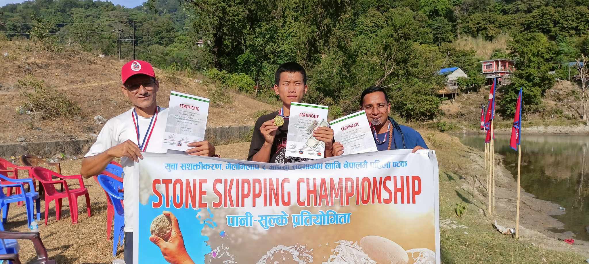 स्टोन स्किपिङ खेलमा खहरेका राहुल लिम्बु प्रथम
