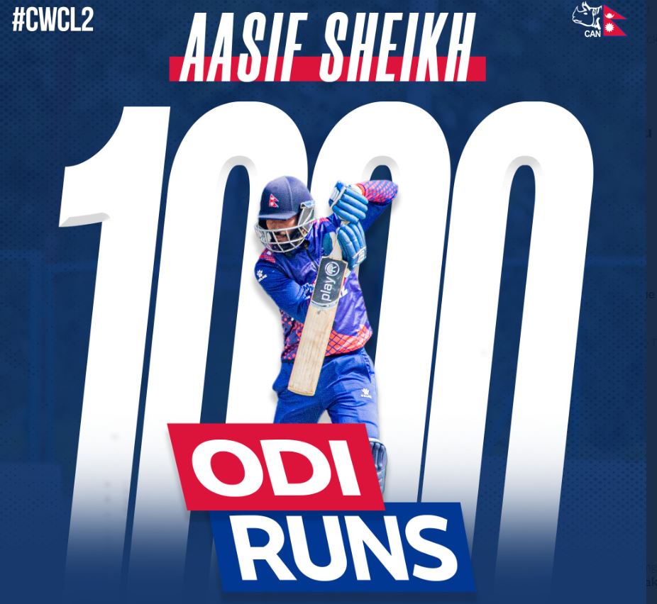 एकदिवसीय अन्तर्राष्ट्रियमा आसिफ शेखको १ हजार रन पूरा