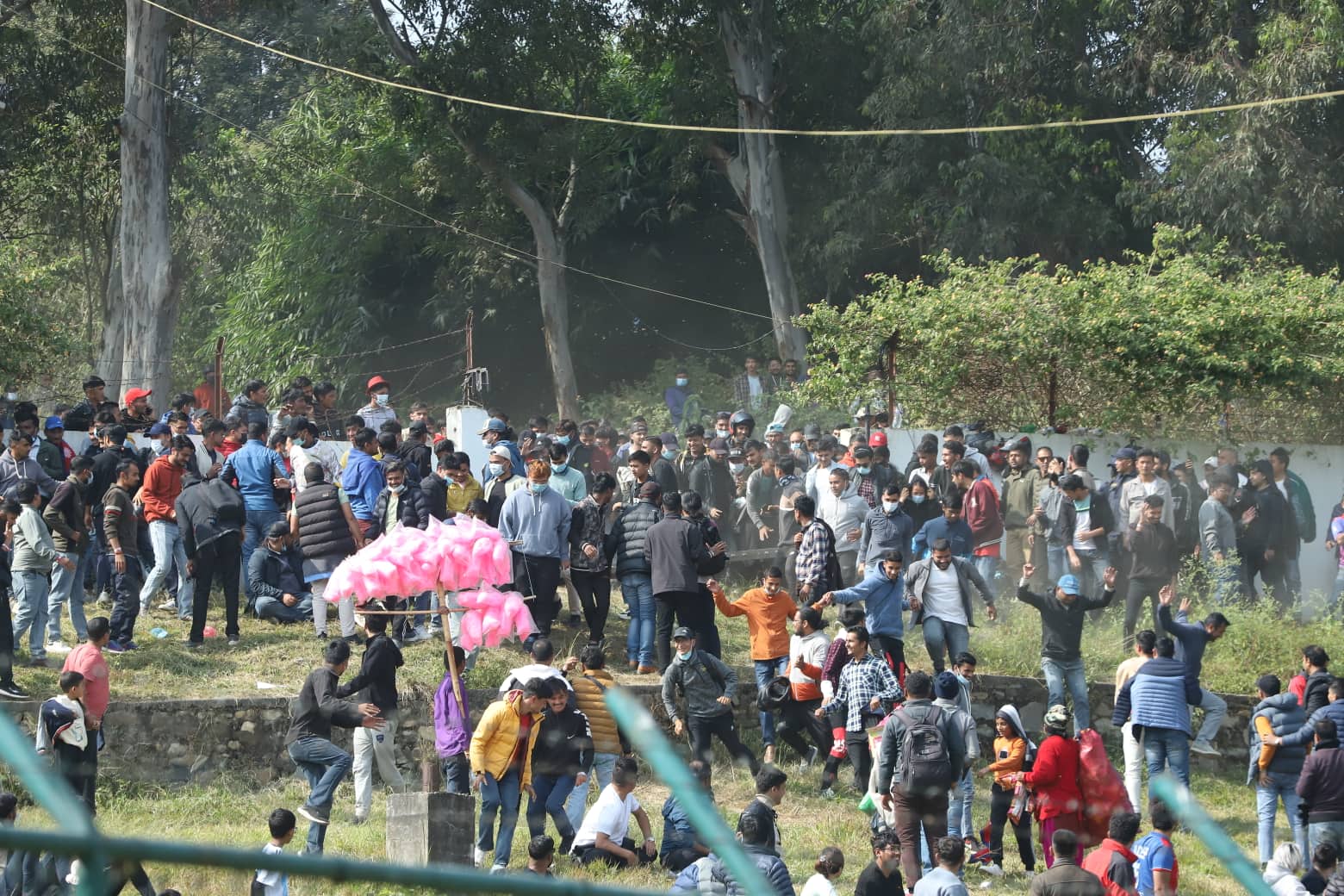 गेट भत्काएर दर्शक छिरे त्रिवि क्रिकेट प्यारापिटमा