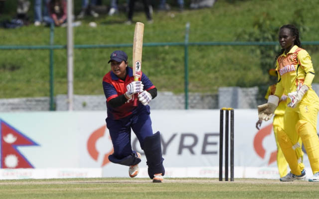 टस जितेर युगान्डाविरुद्ध ब्याटिङ गर्दै नेपाल