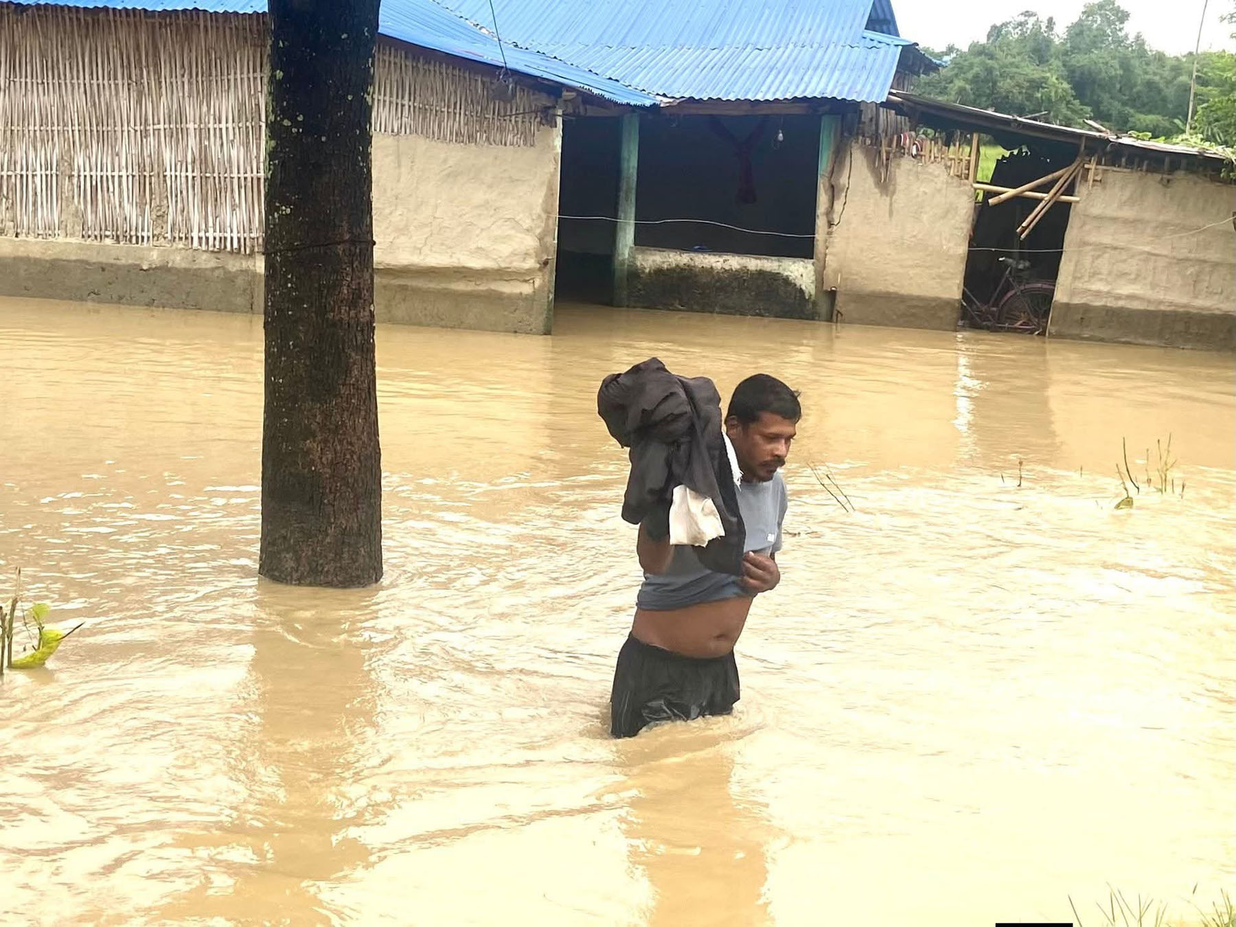 सुनसरीमा बाढीले सयौँ घर डुबानमा