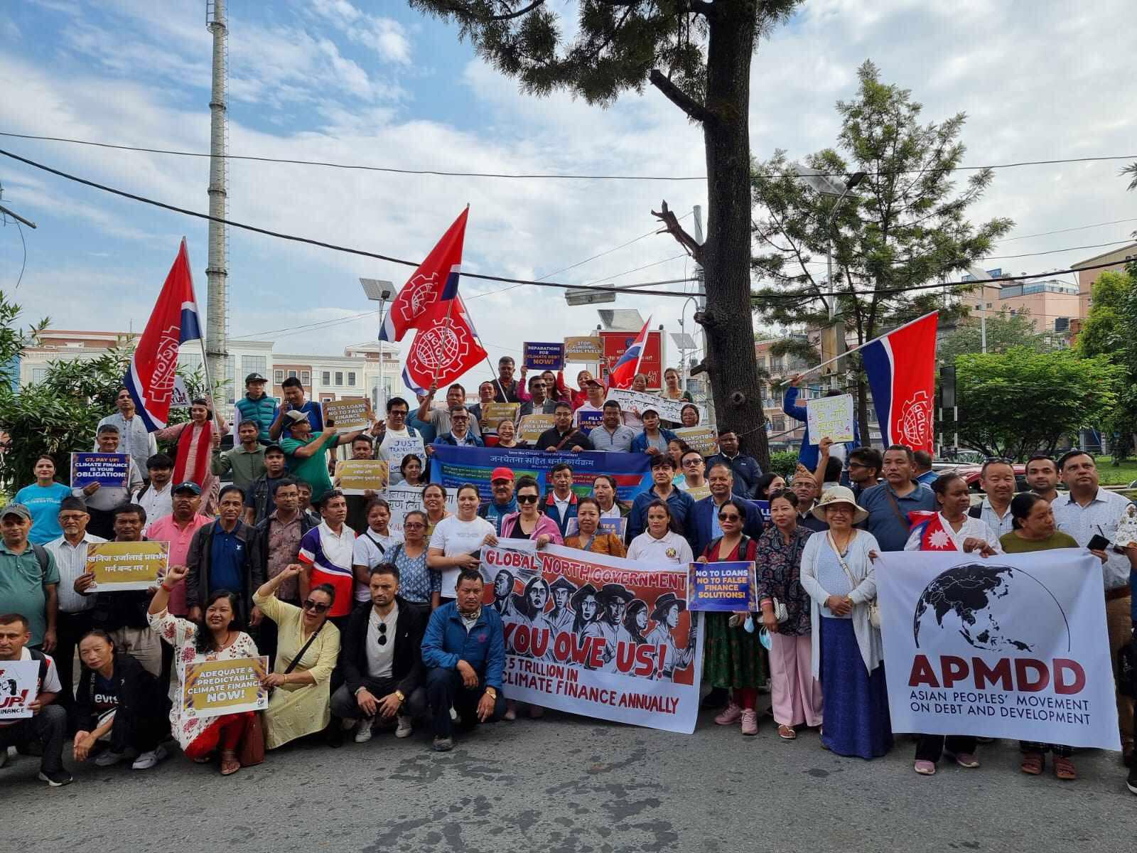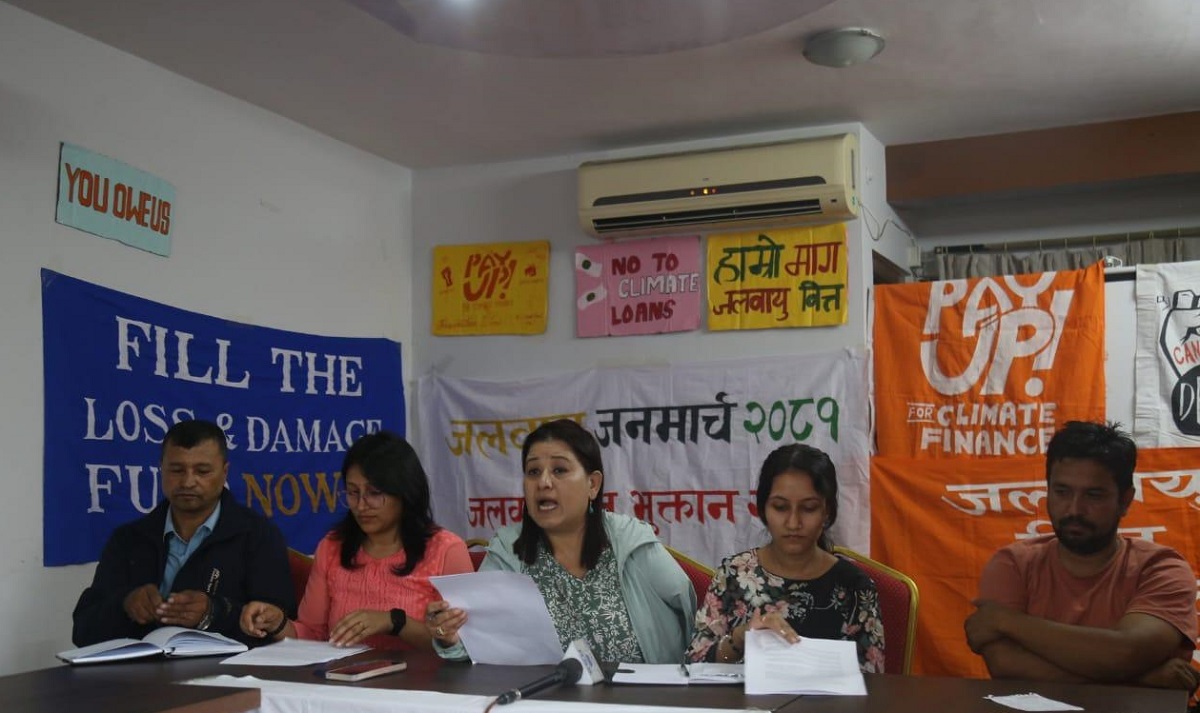 धनी राष्ट्रहरूले जलवायु क्षतिपूर्ति तिर्नु पर्ने माग गर्दै जलवायु अभियन्ताहरूद्वारा काठमाडौंमा प्रदर्शन