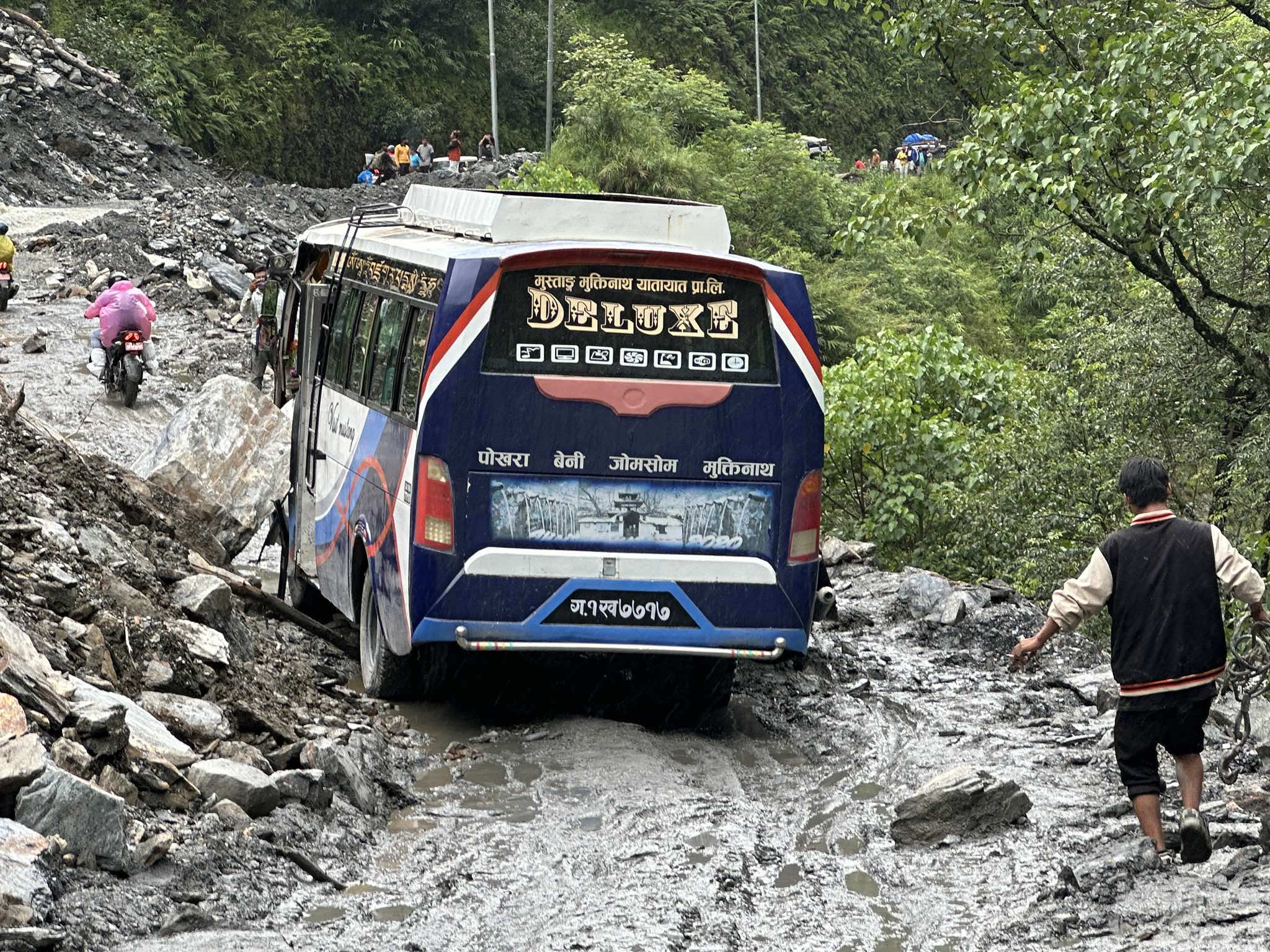 बेनी–जोमसोम–कोरला सडकः सिरुबारीको पहिरोमा दुर्घटनाको जोखिम