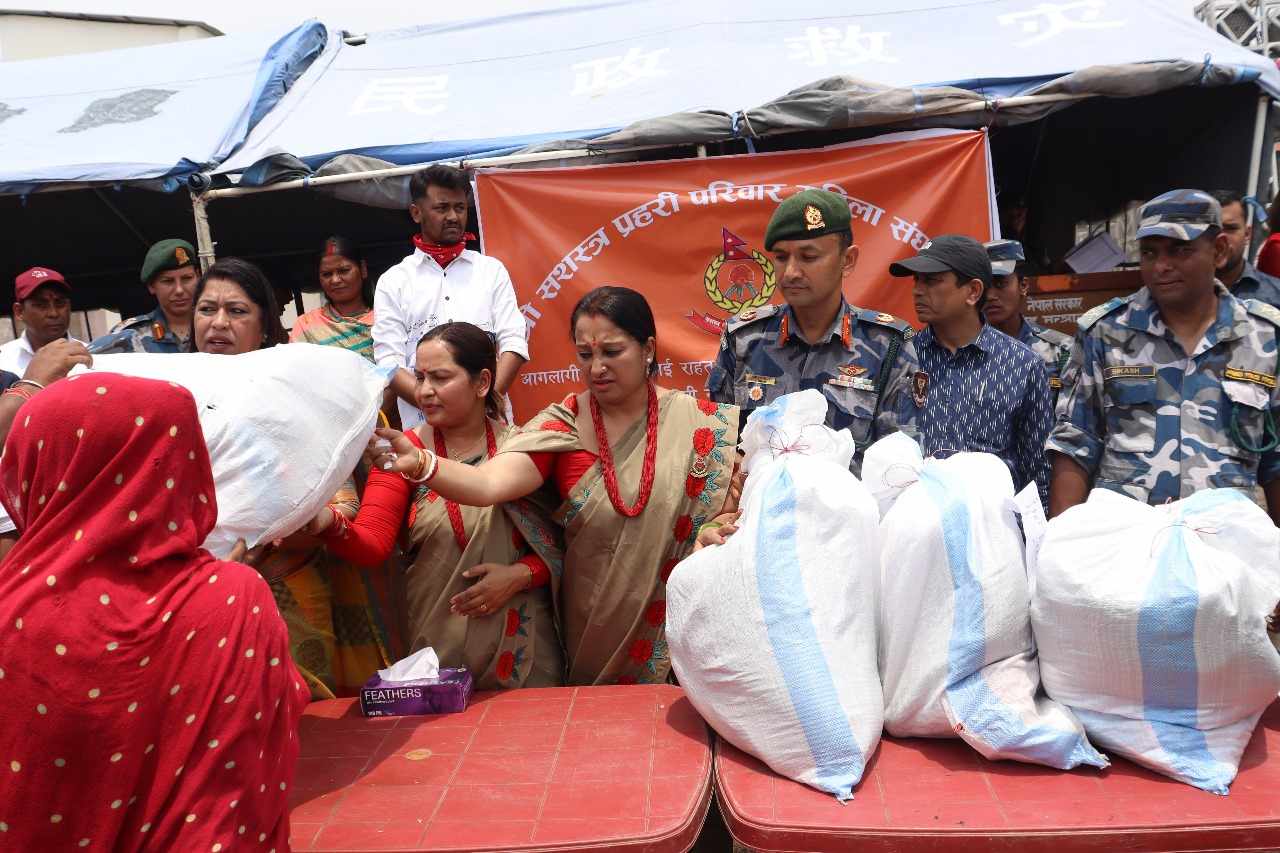 महोत्तरीका आगलागी पिडितलाई सशस्त्र प्रहरी परिवार महिला संघद्धारा राहत