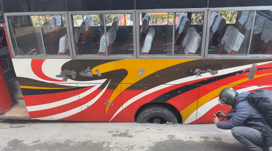 नयाँबानेश्वरकाे सडकमा गुडिरहेको बस भासियो