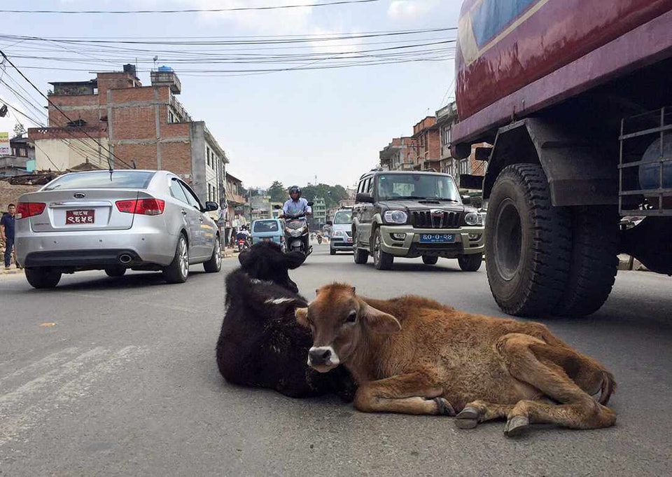 काठमाडौँ महानगरपालिकाले सडकमा भेटिएका गाई बाच्छा ‘काञ्जी हाउस’मा राख्ने
