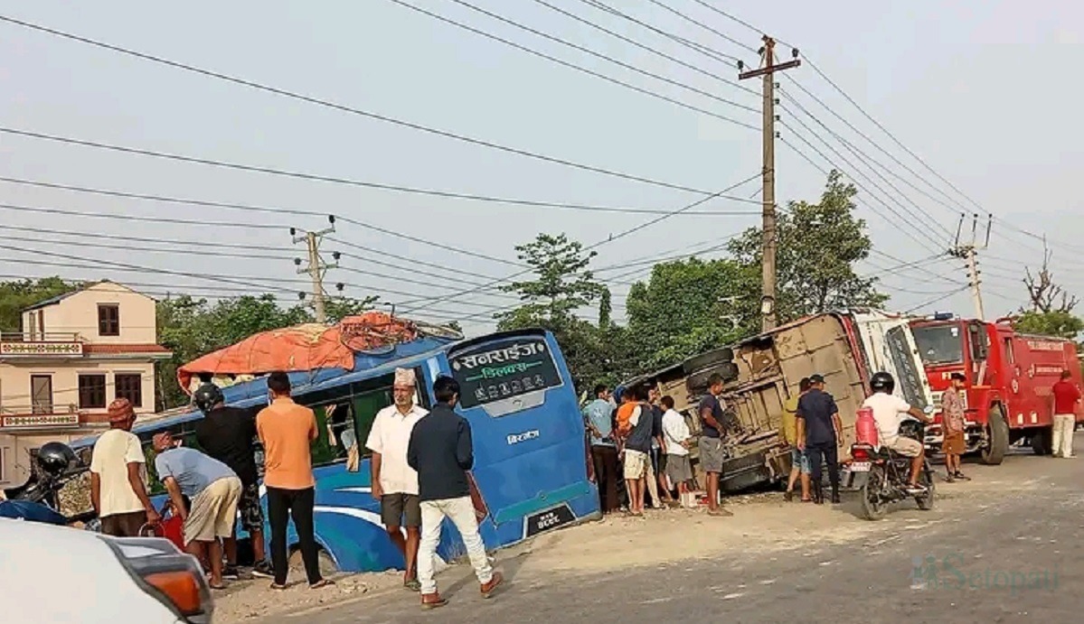 दुई बस ठोक्किँदा एकको मृत्यु, २९ घाइते