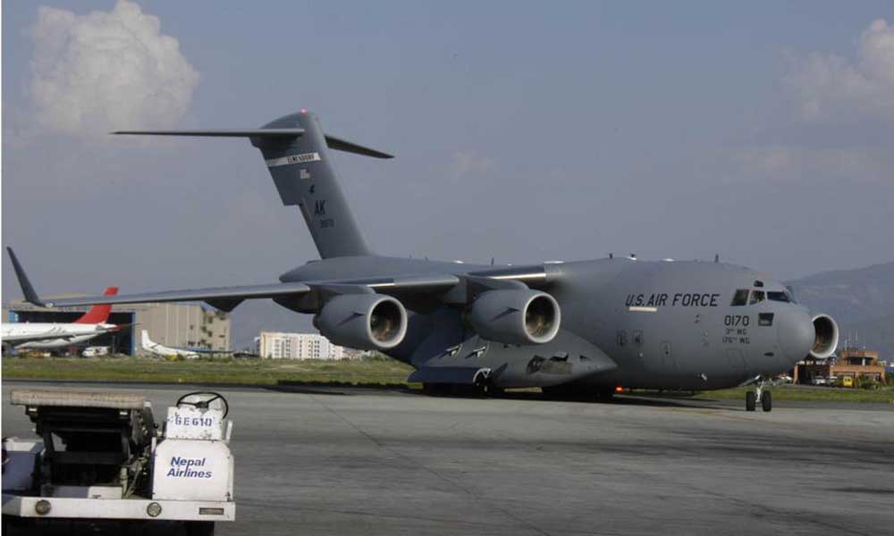 अमेरिकी सेनाको जहाज काठमाडौंमा अवतरण